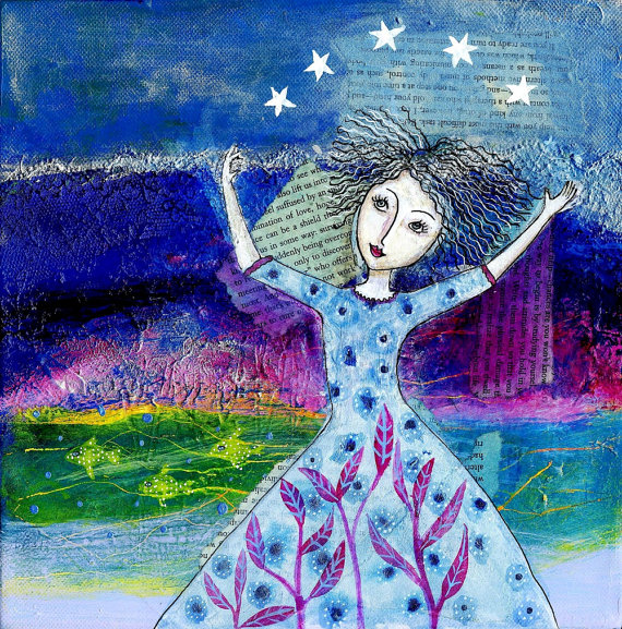 men du er nødt til helt bevidst møde op og træde indenfor i rummet. Sige JA om end hjertet skælver. Her starter det hele igen, her møder du din indre pige og alt det, du elskede at gøre engang. Skrive og fortælle historier. Skrive digte. Vrøvlevers. Male. Synge. Danse. Ja, i det hele taget give dig selv lov til at boltre dig kreativt i den dans, der kun findes i det øjeblik, hvor du er mødt op og har åbnet dig, så kilden kan risle igennem dig. Du opdager, at du på ingen måde har glemt det. Du kan endnu og rummet bærer ikke nag. Det elsker dig stadig. Sjælen har ventet og dansen er slet ikke færdig endnu. Den er kun lige begyndt.