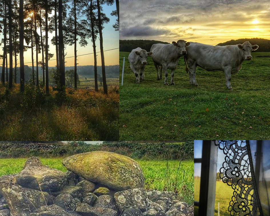 Fra min stol ved spisebordet har jeg udsigt over markerne. Jeg dvæler, betragter, men mærker så pludselig et velkendt stik af sørgmodighed, da jeg kommer i tanke om det tidspunkt, hvor vi igen må pakke bilen og drage hjem. “Stop tiden nu”, siger jeg næsten højt og slår i bordet som om det skulle nytte. “Jeg vil bare blive her med kaffe og udsigt. Vandre, sanke, nyde.”