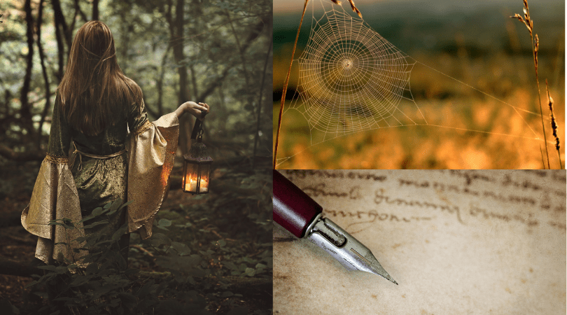 Når du skriver, er du som edderkoppen i hegnet derude. Du er en væverske. Du spinder dine tråde af ord. Fortællinger dukker op og som fyrtårne lyser de og peger på nye veje og åbninger. Det, du ikke så før. Det ser du nu. Væverske.