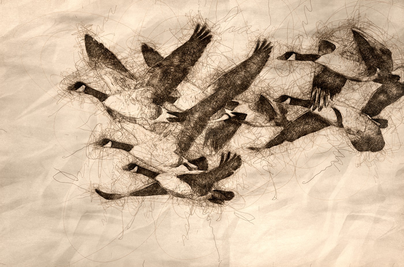 På vej sydover pryder hun himlen med sin flok, de lander på marken bag haven. Fugtig, kølig morgen, oktober har sat sine spor, luften krydret med svamp og forfald.