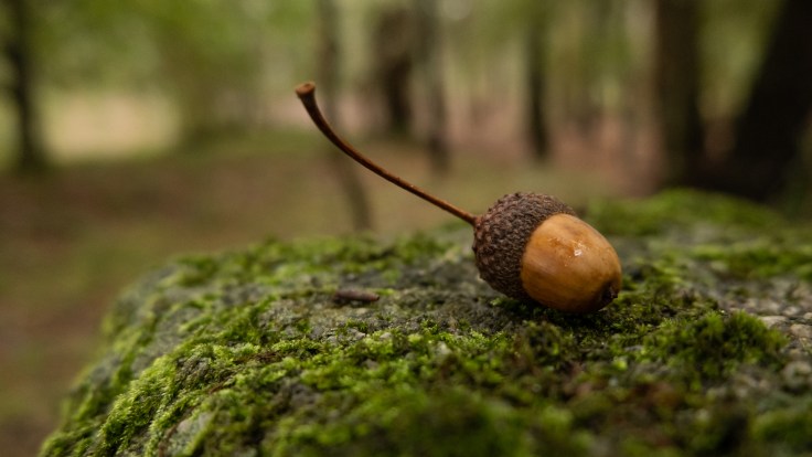 Så forsvinder Hinden i buskadset og gennem nedfaldne blade, knasende og lydløs på samme tid. Kvinden stirrer efter hende, den yndefulde frænde … og så løber ordene tør. Ikke flere tanker, ikke mere energi til at kæmpe og stræbe, det holder simpelthen bare op. En velsignelse rammer hende og med et skridt af gangen følger kvinden i hindens spor. Ind i buskadset, gennem nedfaldne blade, hun samler agern op for foden af Den Gamle Eg og hvisker til himlen mellem trætoppene.