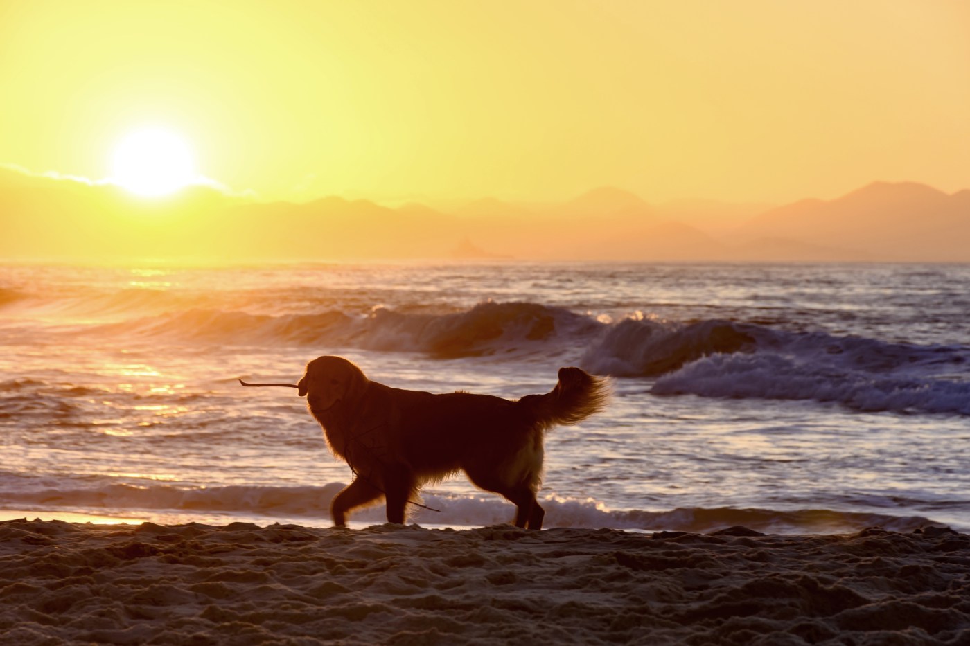 Poppy går om til bagklappen på bilen og åbner. En gylden hund springer ud og kommer mig glad i møde. Hun ligner en labrador, men har lidt længere pels og busket hale, der logrer ivrigt.
