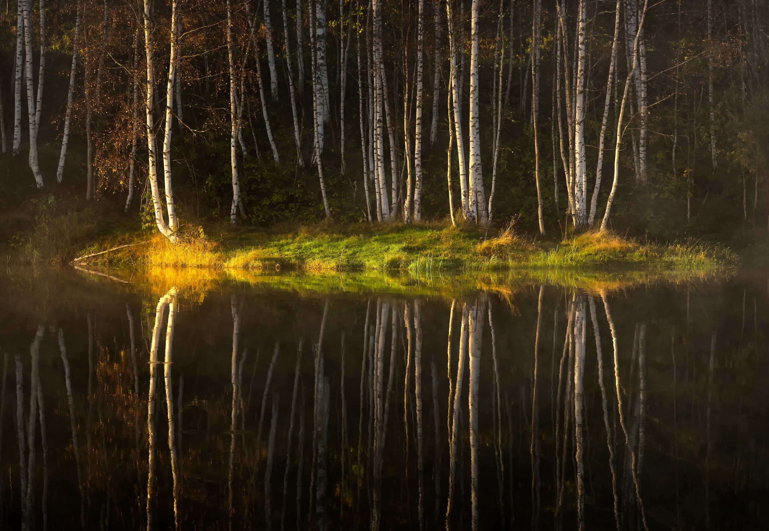 Da er det, at den går op for mig. Tærsklen. Pludselig letter stille tåge og jeg ser, at jeg står indeni. Et sted fuld af bregner, frodig fugt og en fugl, der betragter mig fra søen. Farverne er grønne, en smule famlede og dog mættede af magisk energi.